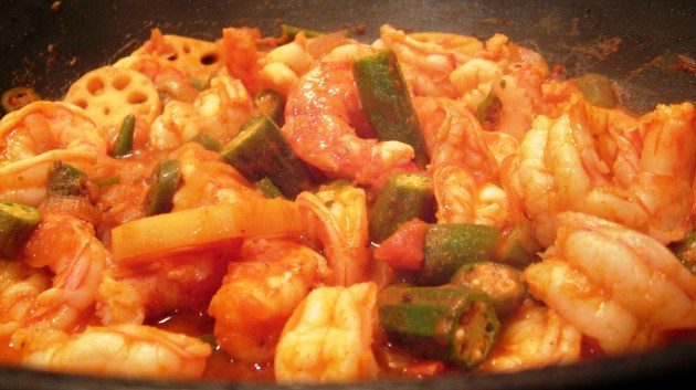 Continue to cook on medium heat for another 5 – 7 minutes, then add the shrimp or prawns and cook on medium heat until all prawns are no longer transparent.