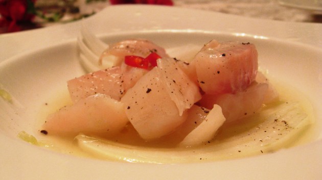 Slice the onion and plate, then on a separate cutting board and with a different knife, cut fish filets into 1/2 inch strips and then into small bite size pieces. Cut fish the long way, against the grain. Sprinkle both sides of fish with plenty of sea salt. Place fish onto onion and squeeze about 2 limes of each one – depending on the size and juiciness of each lime. The fish should be soaked. Crack some fresh pepper on top of each dish and add the chili pepper. Finally drizzle olive oil on each dish. Let it sit for 3 – 4 minutes and then squeeze some fresh lime right before serving. Serve with some gluten-free beer or some chilled white wine if you like to indulge in some tasty libations.