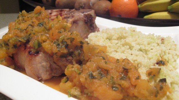 Papaya Chutney — served with Meat Shop AZ thick-cut Pork Chop and Cauliflower Rice
