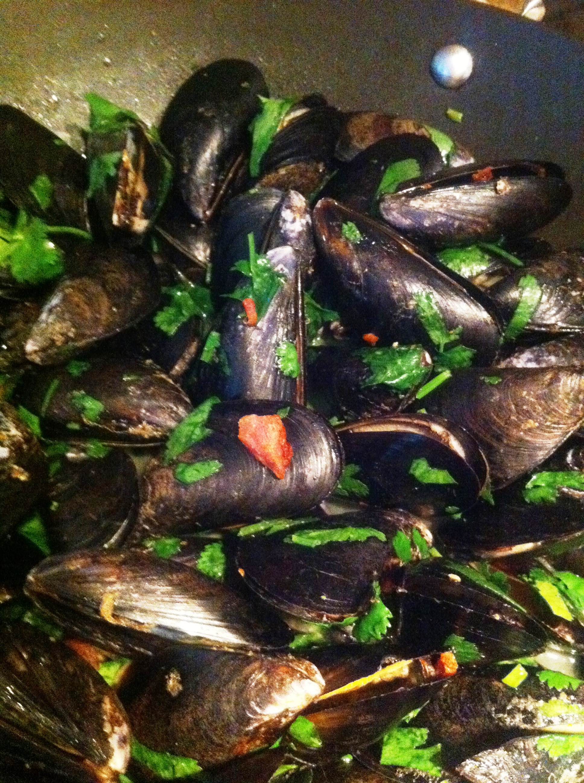 Living in Arizona we must make do with mussels from a good store, but in this case frozen. However, they still tasted amazing with this great preparation.
