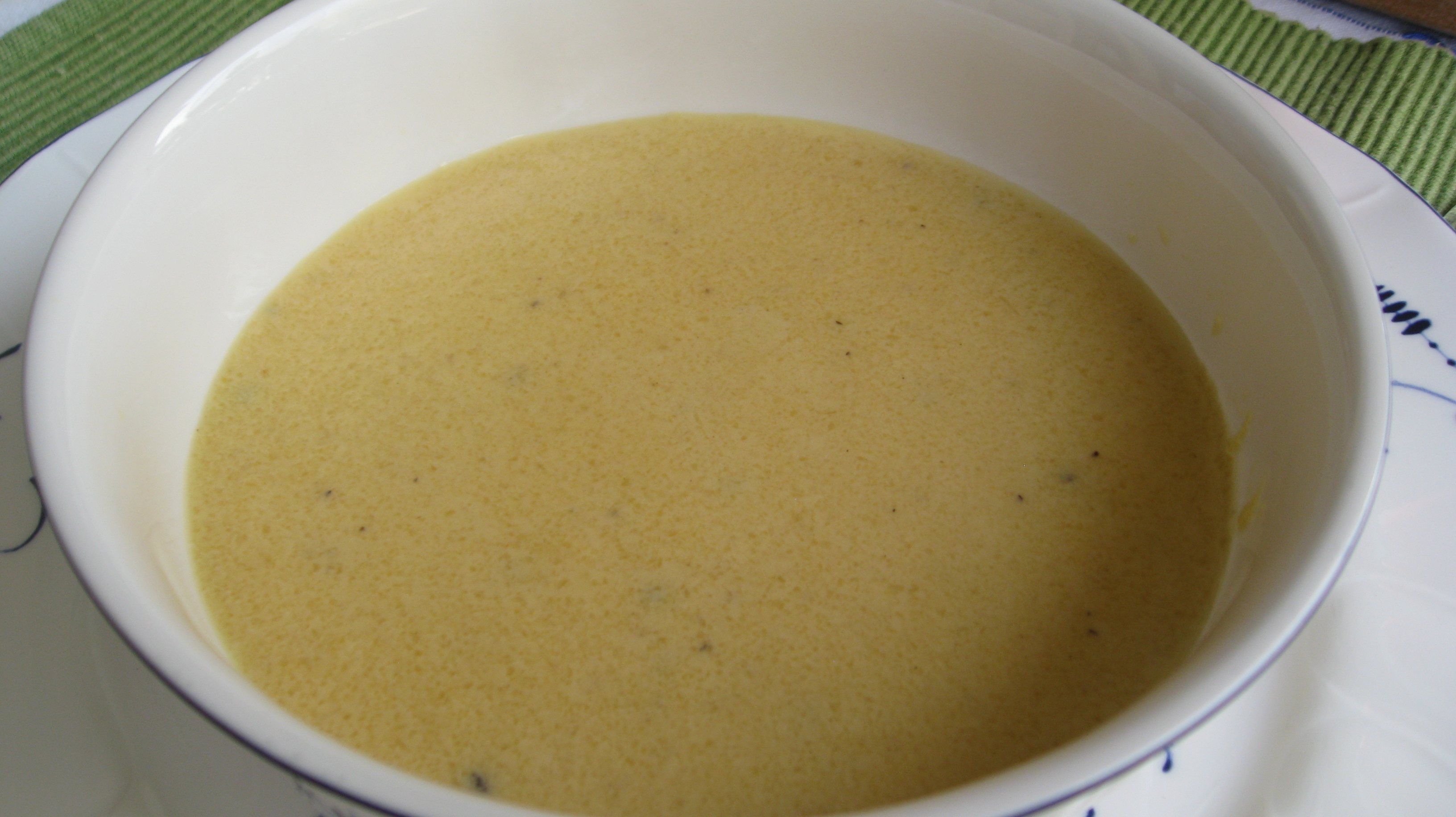 Take a high rimmed sauce pan and add all ingredients, with a hand blender very cautiously and carefully begin to blend all ingredients until all is well mixed and blended smoothly. Pour into your serving dishes and refrigerate for an hour and serve.